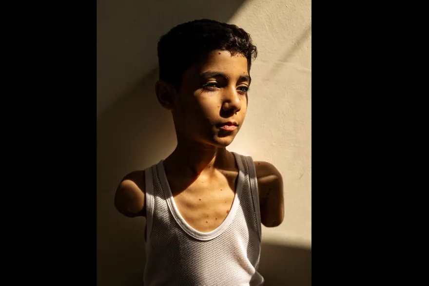 L’image, capturée par la photographe palestinienne Samar Abu Elouf, est un portrait du jeune Mahmoud Ajjour, évacué à Doha après qu’une explosion lui a arraché un bras et mutilé l’autre en 2024. Il apprend maintenant à jouer sur son téléphone, à écrire et à ouvrir des portes avec ses pieds. « Mahmoud a un rêve très simple : il veut obtenir des prothèses et vivre sa vie comme n’importe quel autre enfant », ont déclaré les organisateurs du World Press Photo dans un communiqué. Article de SWI.