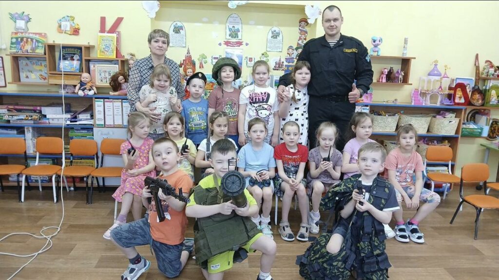 Noël dans une classe de maternelle en Russie. En fin 2025, le propagandiste Vladimir Soloviov a déclaré devant Poutine que l’homme est fait pour la guerre. La patrie n’existe qu’en temps de guerre. La Russie a toujours été victorieuse parce que « avec nous, il y a Dieu ».